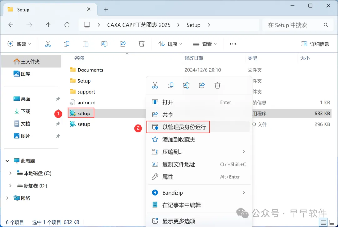 4、找到【Setup】应用程序,右键选择【以管理员身份运行】它