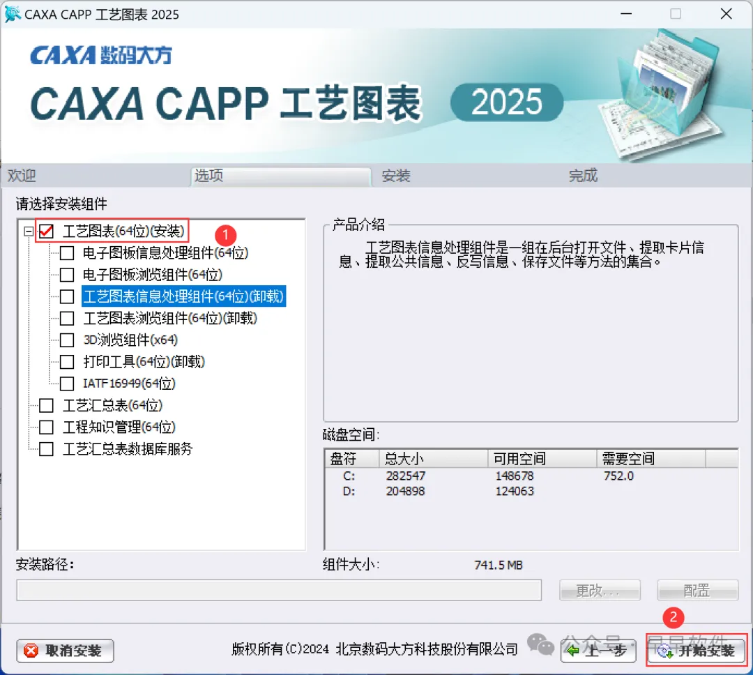 7、勾选需要安装的组件,再点击【开始安装】
