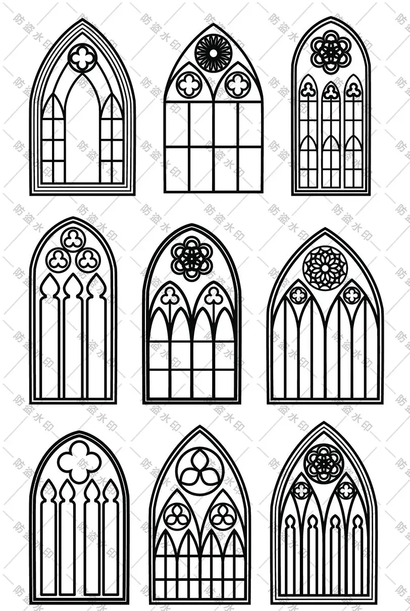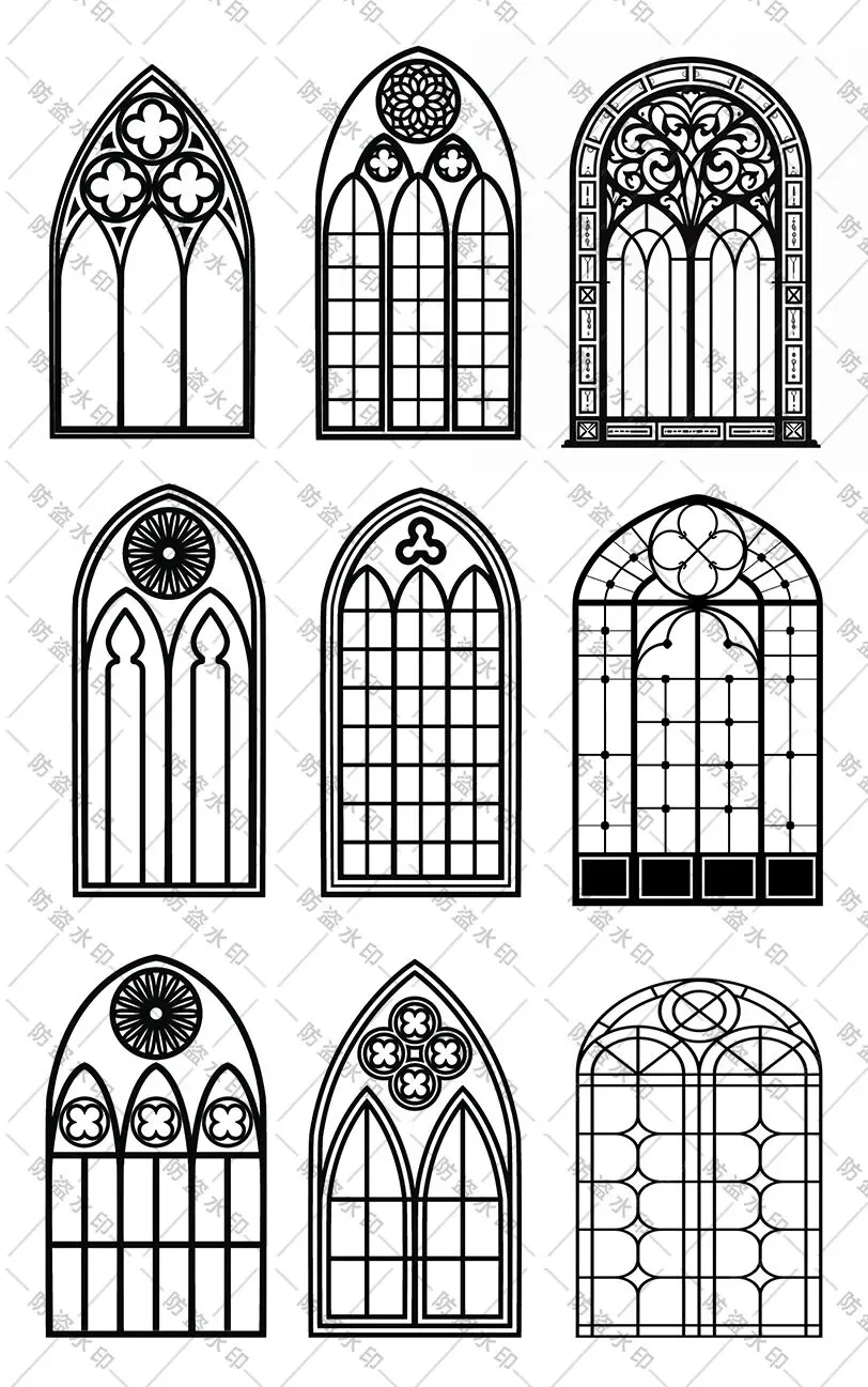 免费资料|哥特式窗户造型,高清线稿参考图下载