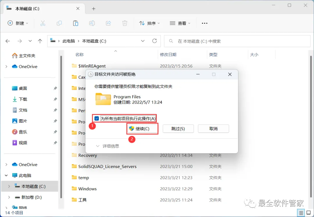 3、找到【Program Files】文件夹,右键点击【复制按钮】