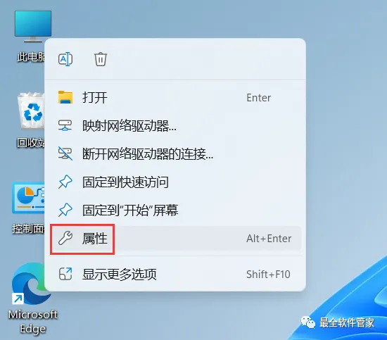 11、回到桌面,右键【此电脑图标】,点击【属性】