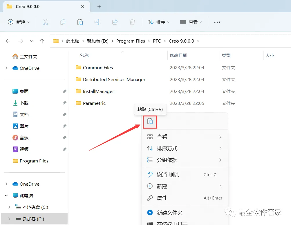 28、找到【Creo 9.0.0.0】文件夹,右键【打开】它