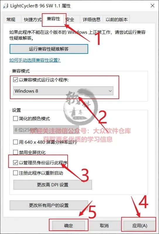 11.在兼容性那里以Windows 8运行,勾选管理员身份运行,点击应用,点击确定;