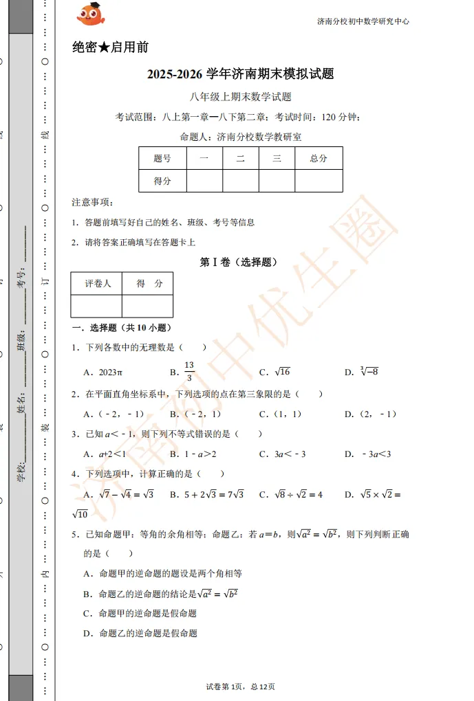 历下又难哭了?2025.3历下区一模数学+物理试卷“出炉”,速领真题