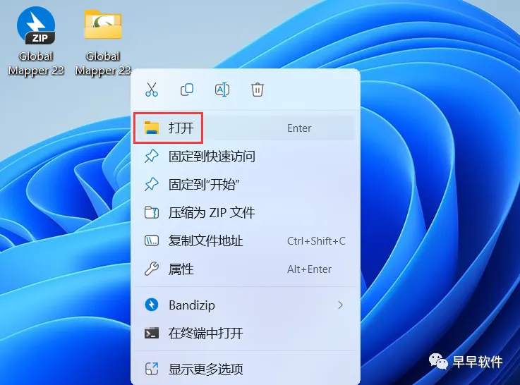 15、回到桌面,右键桌面上的【Global Mapper 23软件图标】,点击【打开】