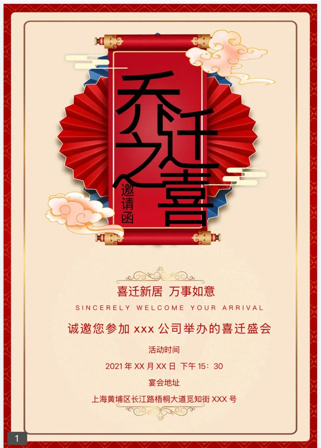乔迁之喜邀请函电子模板!(免费下载,可编辑)简约大气风格