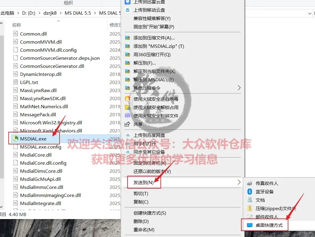 3.右键MSDIAL.exe选择发送到桌面快捷方式;