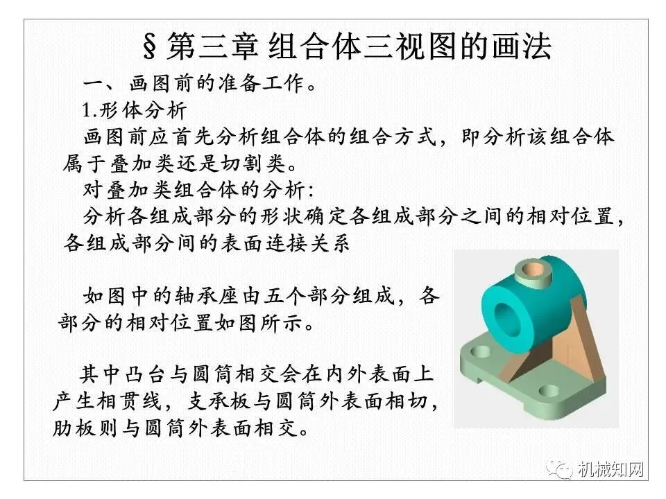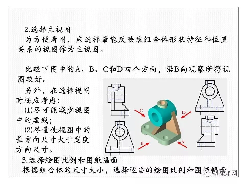 首先,其理论基础源于画法几何,特别是正投影法。该方法将三维形体投射到二维平面,形成能准确反映形状和位置关系的视图,如主视图、俯视图和左视图,这是所有图形表达的根基。