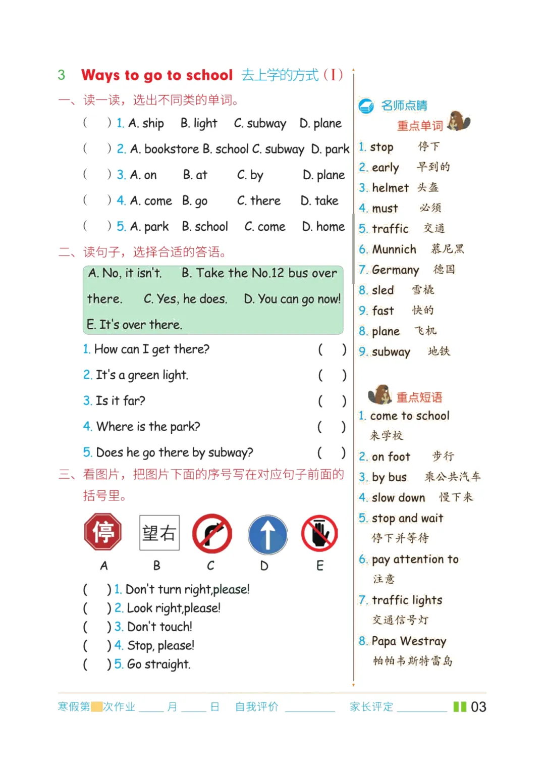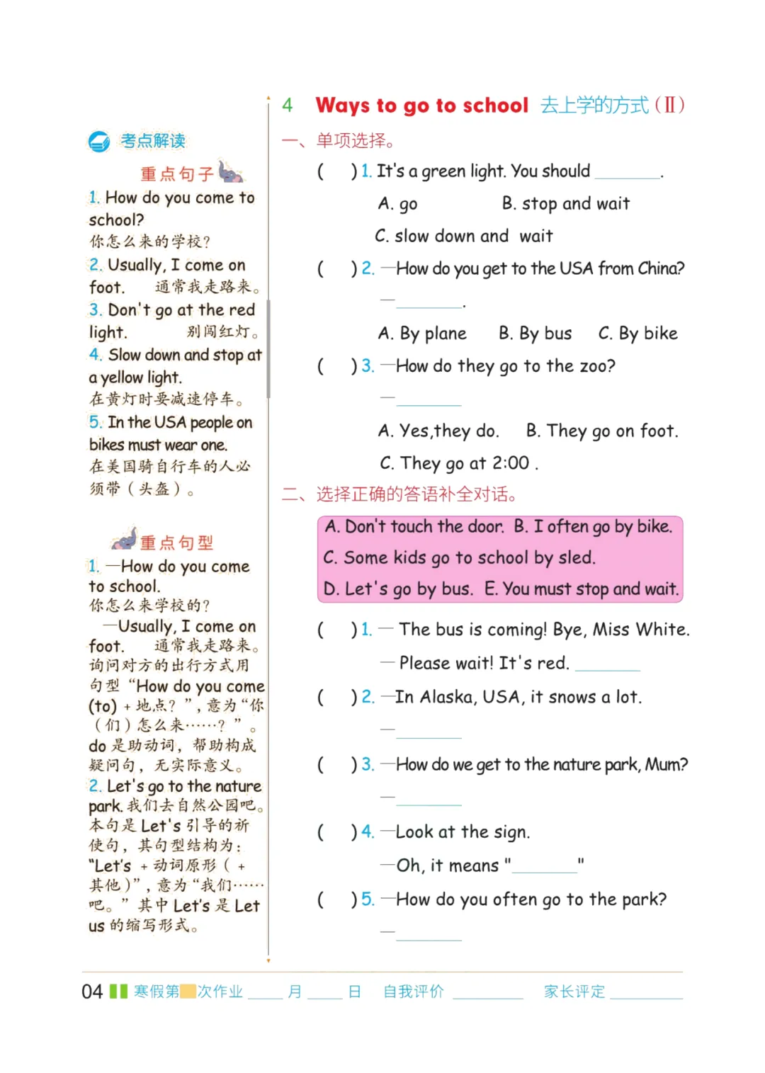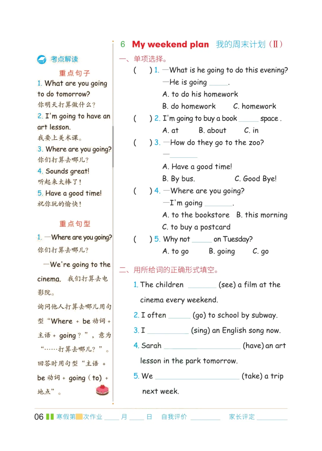 六年级英语上册期末复习