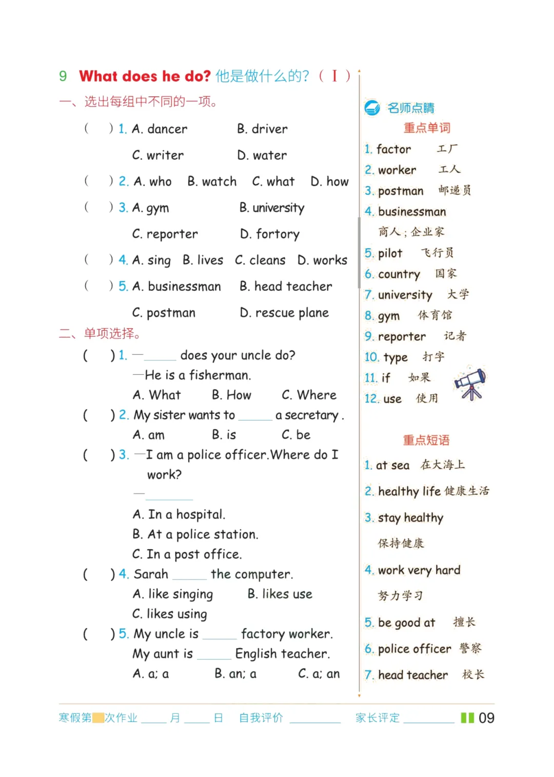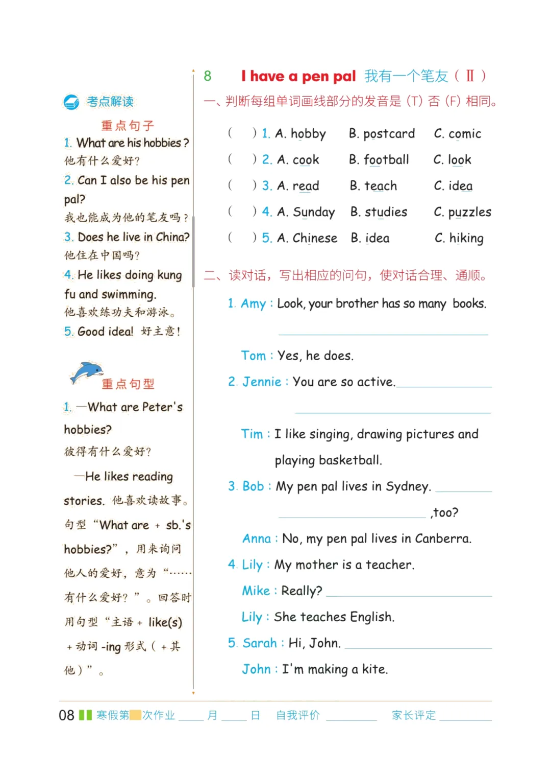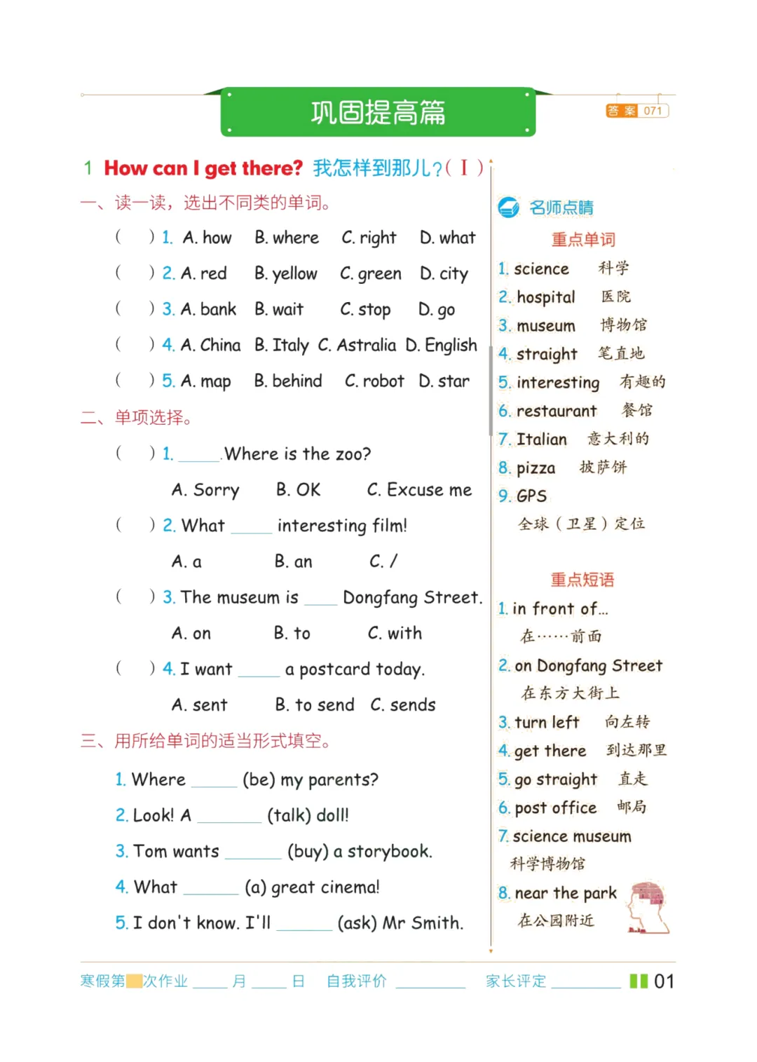 六年级英语上册期末复习