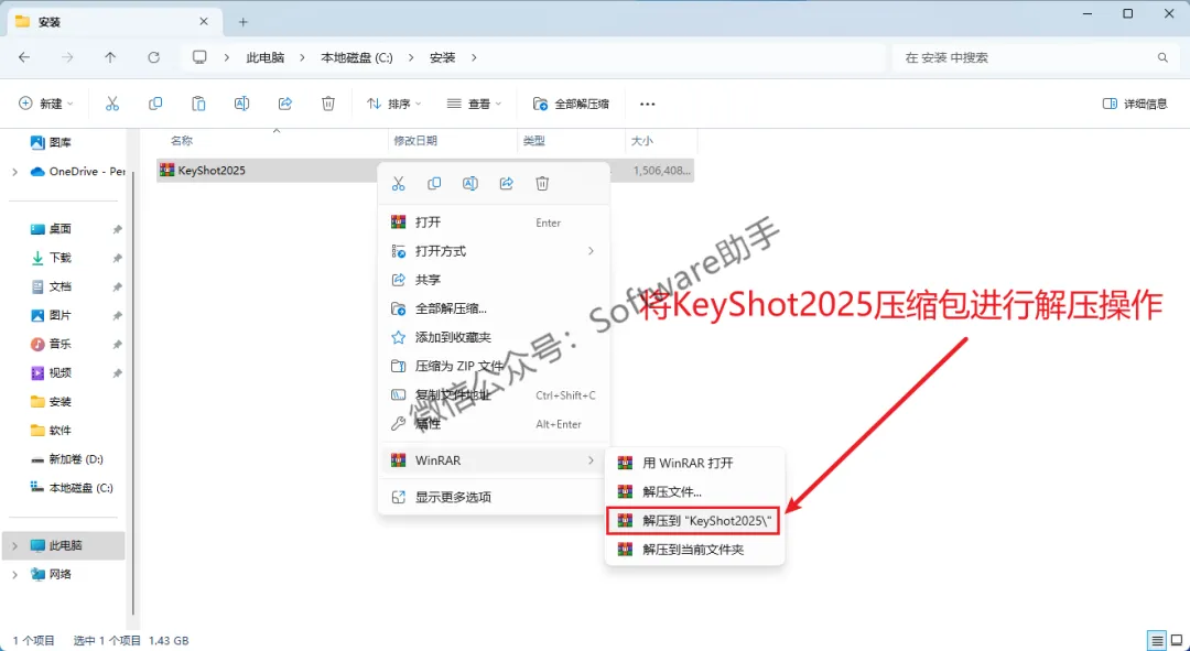 1.鼠标右击【KeyShot2025】压缩包,将它解压