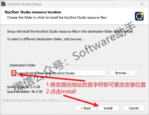 8.先修改路径地址中的首字符C可更改安装位置(如:将C改为D表示安装到D盘),再点击【Install】
