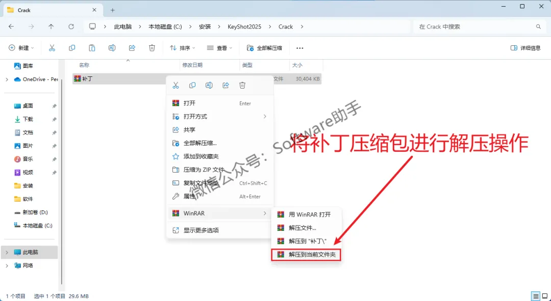12.鼠标右键【补丁】压缩包,进行解压操作