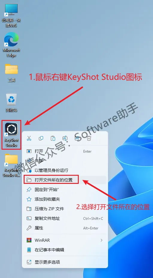 14.鼠标右击桌面【KeyShot Studio】图标,选择【打开文件所在的位置】