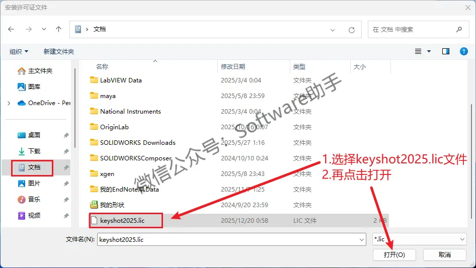 25.选择步骤19中保存的【KeyShot2025.lic】,点击【打开】