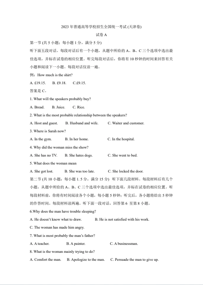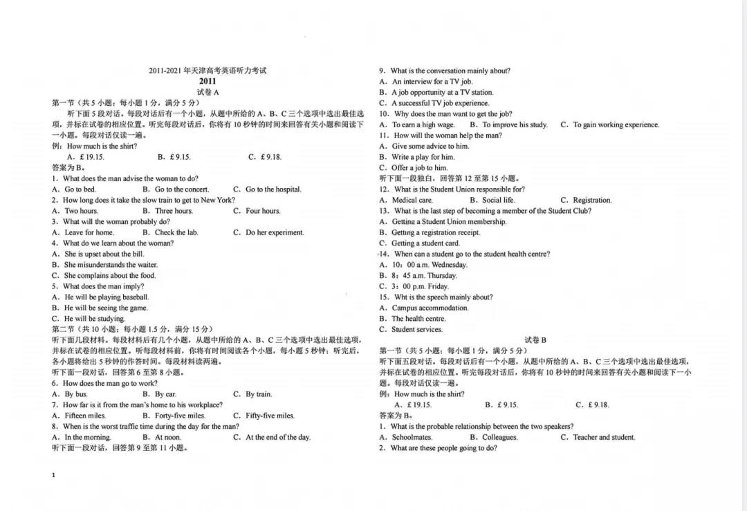 今天铭小言给大家分享的是:【2008-2023天津英语高考听力真题】电子版附链接可下载打印。文章末尾有完整电子版领取方式。可直接免费领取,欢迎收藏和下载。