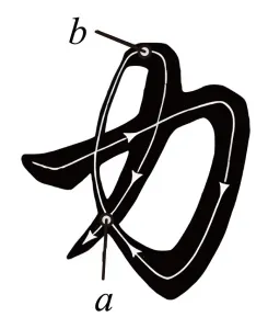 1.书法课上,某同学临摹“力”字时,笔尖的轨迹如图中带箭头的实线所示。笔尖由a点经b点回到a点,则()