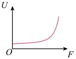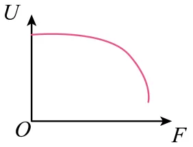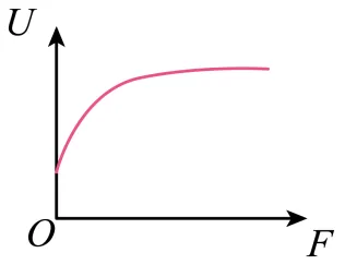 4.如图,某压力传感器中平行板电容器内的绝缘弹性结构是模仿犰狳设计的,逐渐增大施加于两极板压力F的过程中,F较小时弹性结构易被压缩,极板间距d容易减小;F较大时弹性结构闭合,d难以减小。将该电容器充电后断开电源,极板间电势差U与F的关系曲线可能正确的是()