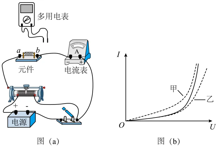 11.在测量某非线性元件的伏安特性时,为研究电表内阻对测量结果的影响,某同学设计了如图(a)所示的电路。选择多用电表的直流电压挡测量电压。实验步骤如下: