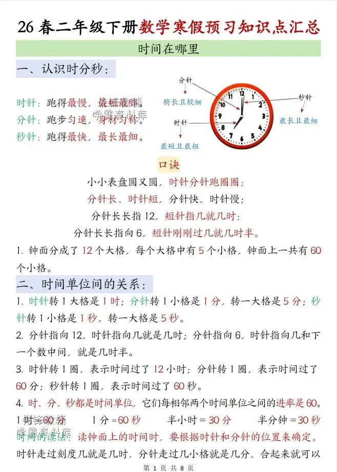 今天给大家整理了26春新数学人教二年级下册寒假知识点汇总转发给朋友或班级群,受益更多人,帮助孩子学习!