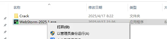 进入到Crack文件夹里面,然后复制箭头指向的,粘贴到C盘根目录右键桌面上的【WebStorm 2025.1软件图标】,点击【打开文件所在的位置】返回到bin目录上一个路径,也就是根目录,选择粘贴,并选择替换如果安装其他的,这样操作没用,记得要选择中国,大陆地区,至于为何,想必曾经破解过多次导致的