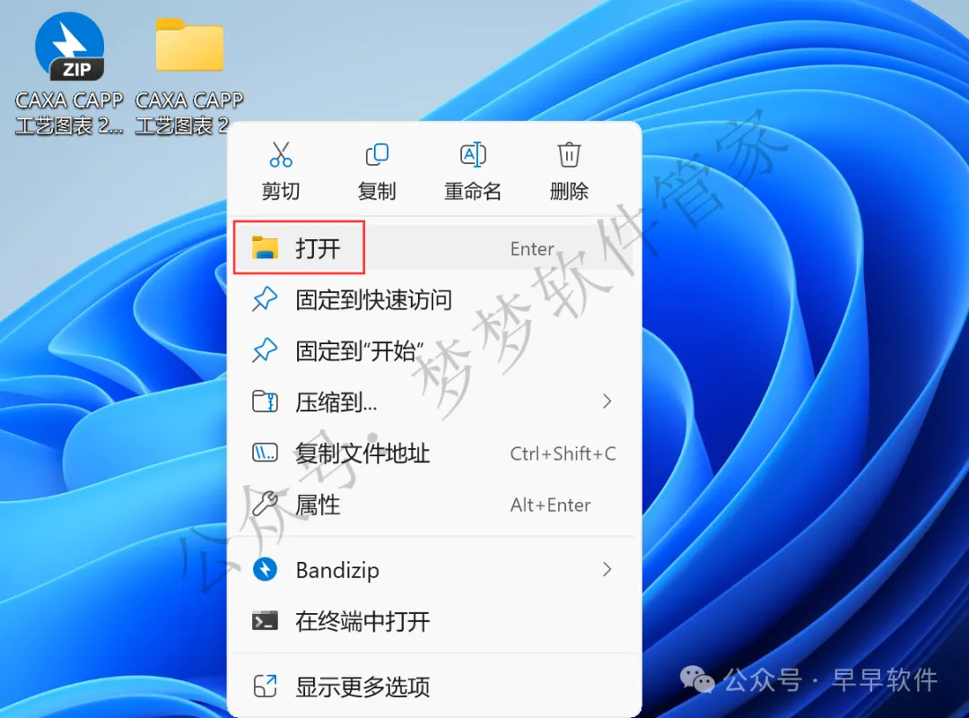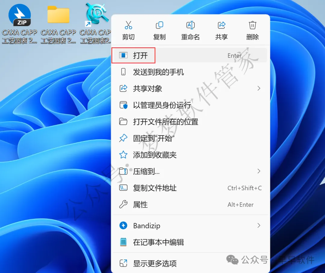 14、回到桌面,右键桌面上的【CAXA CAPP工艺图表 2026软件图标】,点击【打开】