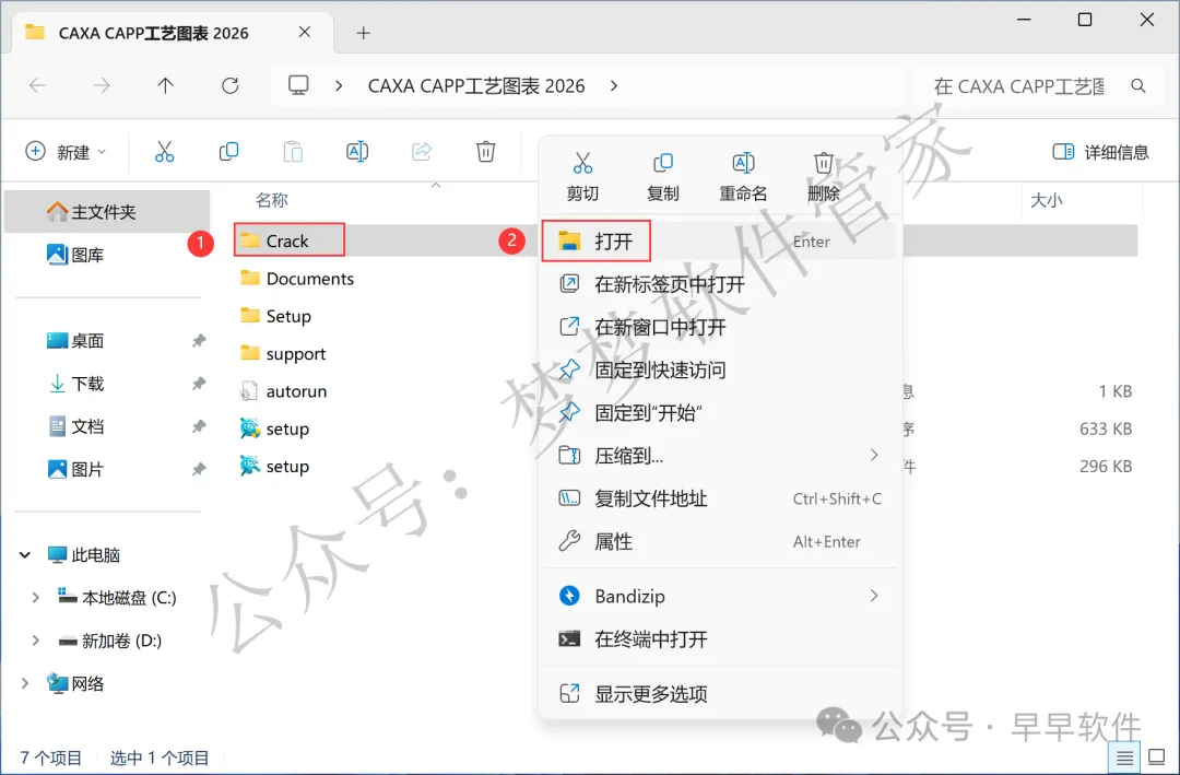 10、回到CAXA CAPP工艺图表 2026文件夹,找到【Crack】文件夹,右键【打开】它