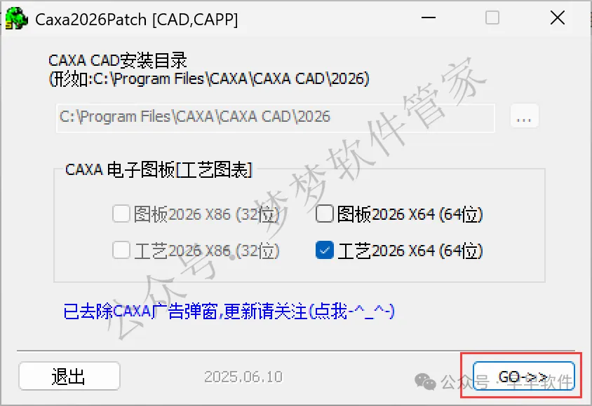 12、勾选【工艺2026 X64(64位)】,再点击【Go】