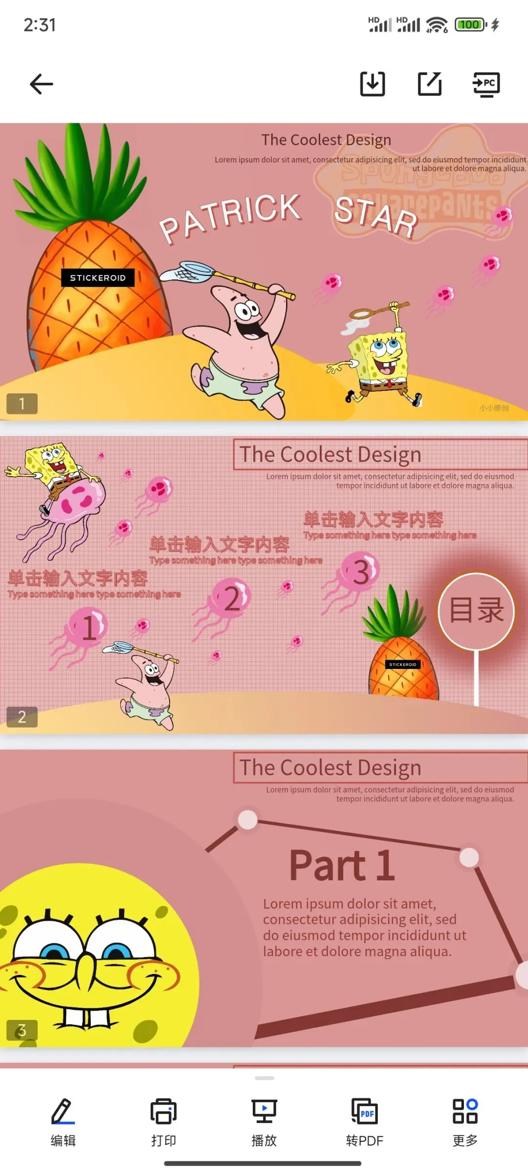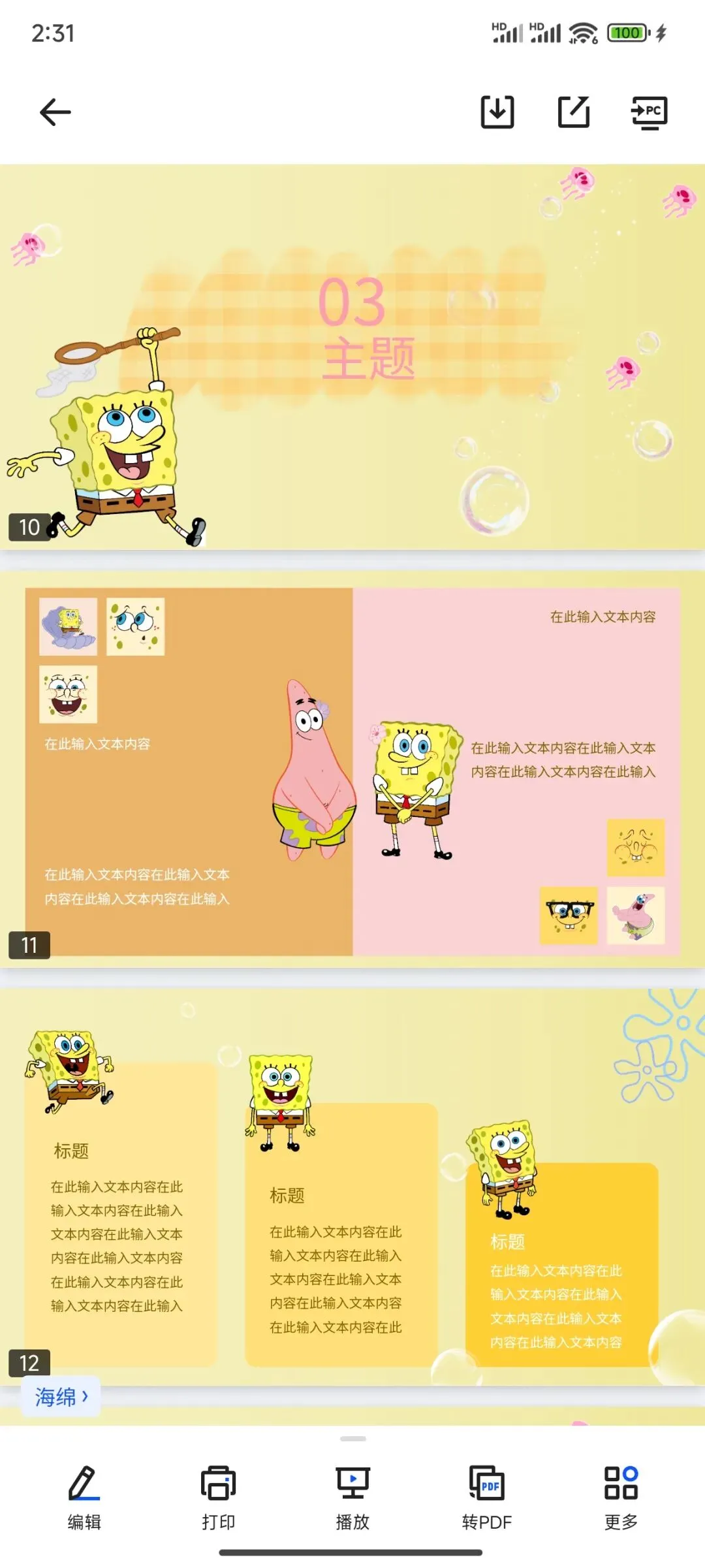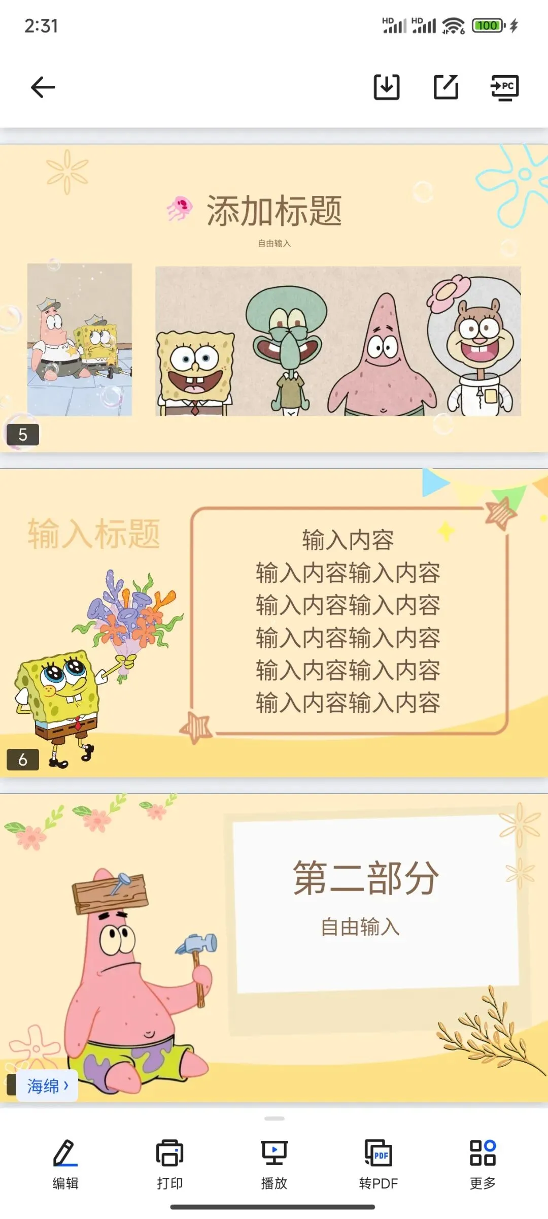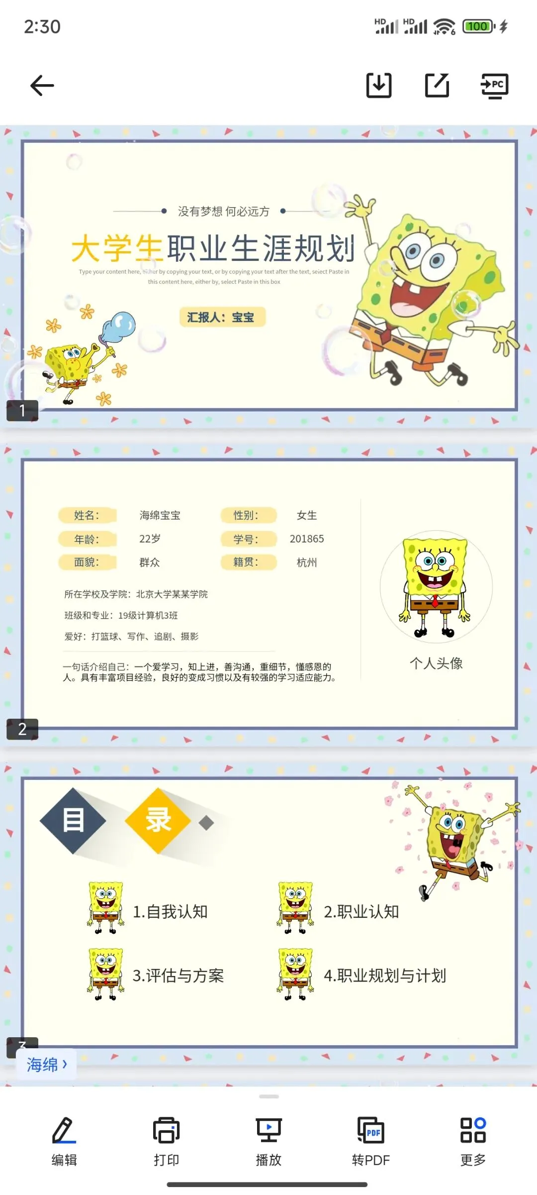 本文分享:海绵宝宝系列PPT