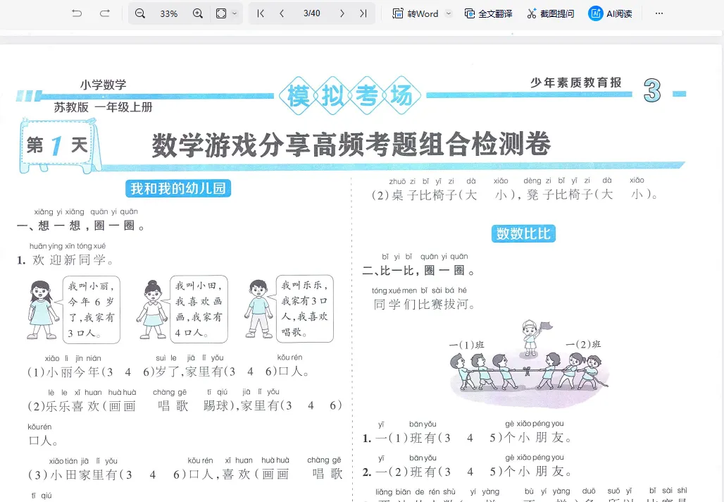 25秋15天满分备考苏教数学一年级上册,免费下载