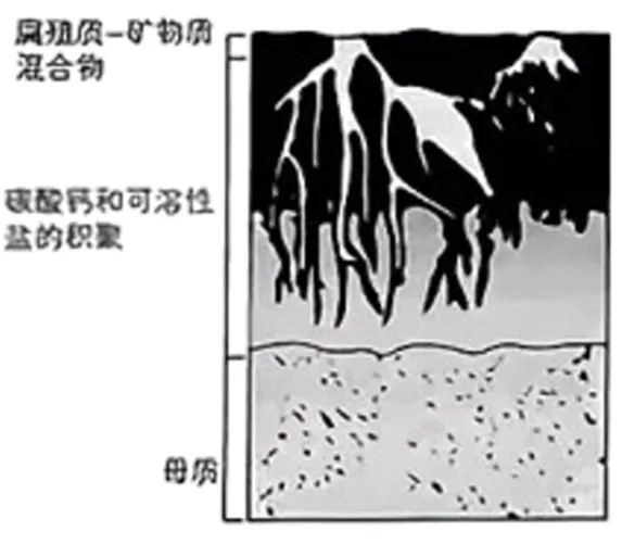 7.在图示荒漠土壤中,可溶性盐积聚的过程是()