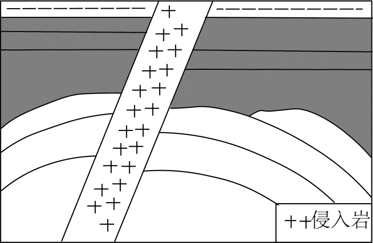 A.岩层褶皱B.地壳沉降C.岩层断裂D.岩浆侵入