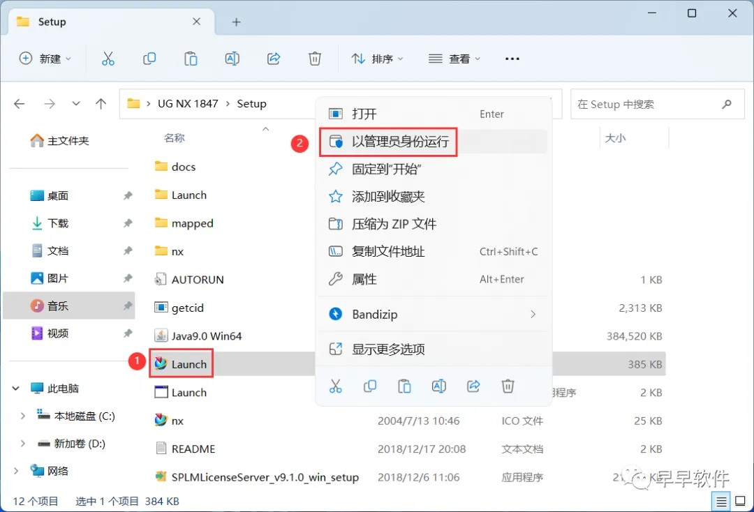 16、回到Setup文件夹,找到【Launch】应用程序,右键选择【以管理员身份运行】它