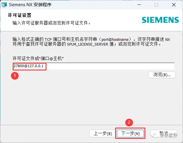 21、许可证文件输入:27800@127.0.0.1,再点击【下一步】