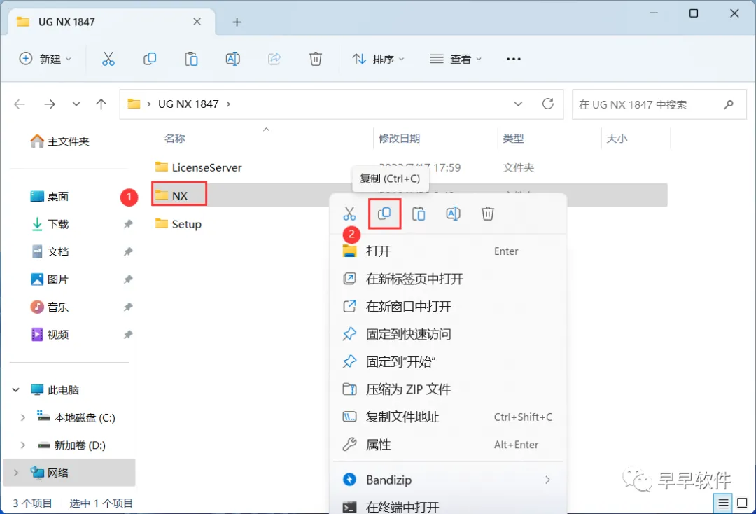 27、回到UG NX 1847文件夹,找到【NX】文件夹,右键点击【复制按钮】
