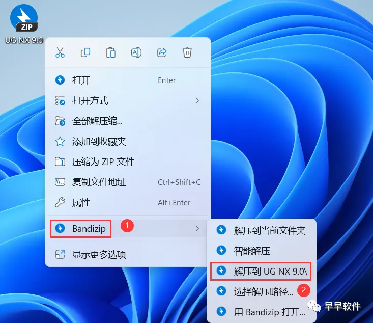 1、下载UG NX 9.0软件安装包到电脑上,右键选择【解压到UG NX 9.0\】