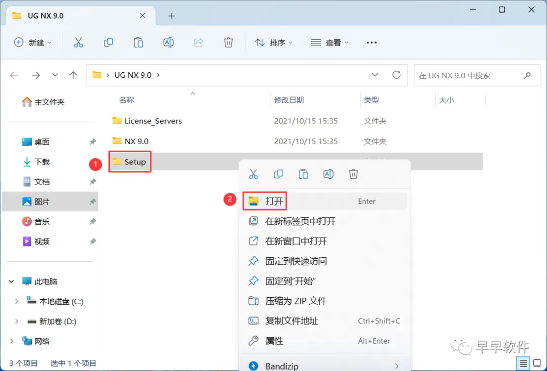 8、回到UG NX 9.0文件夹,找到【Setup】文件夹,右键【打开】它