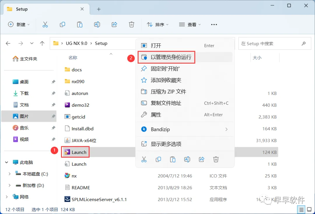 13、回到Setup文件夹,找到【Launch】应用程序,右键选择【以管理员身份运行】它