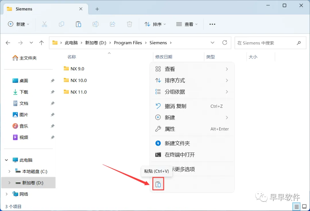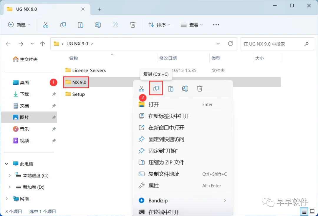25、回到UG NX 9.0文件夹,找到【NX 9.0】文件夹,右键点击【复制按钮】