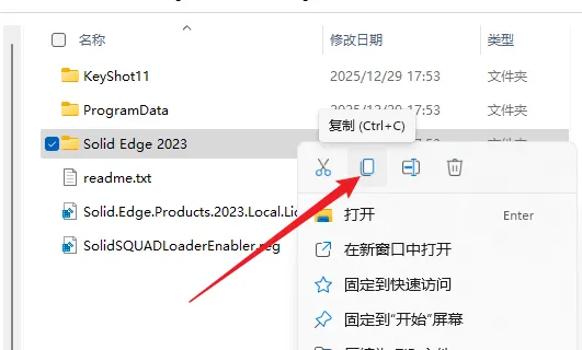11.鼠标右击【Solid Edge 2023】文件夹选择【复制】。