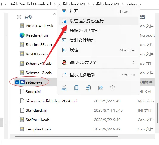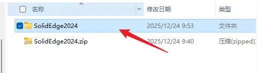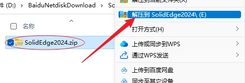 1.解压安装包:鼠标右击【Solid Edge2024】压缩包,选择电脑上安装的解压软件,点击【Solid Edge2024 】。