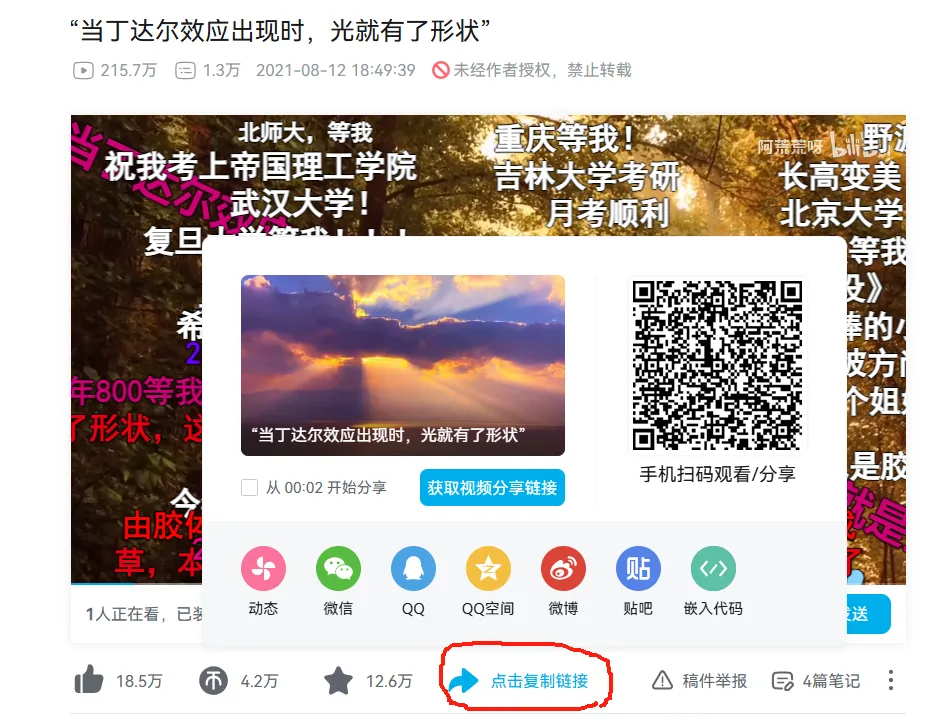 第二步:打开B站找到你要下载的视频,点击分享,就会出现复制链接。