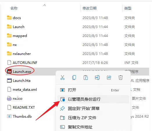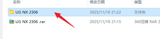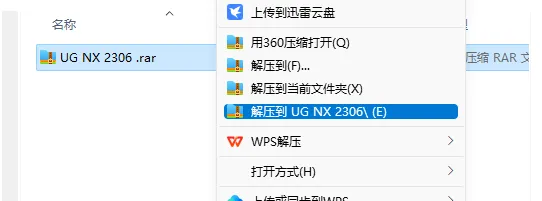 1.解压安装包:鼠标右击【UG NX 2306】压缩包,选择电脑上安装的解压软件,点击【UG NX 2306】。