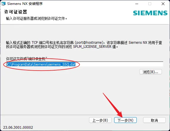 输入【C:\ProgramData\Siemens\siemens_SSQ.dat】点击下一步。
