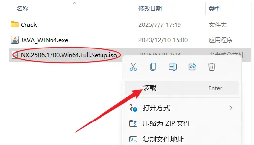 12.右键选择【装载】NX2506镜像文件(若无装载选项,可以选择打开方式为Windows资源管理器)。
