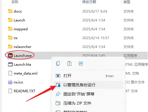 13.右键以管理员身份运行Launch程序。