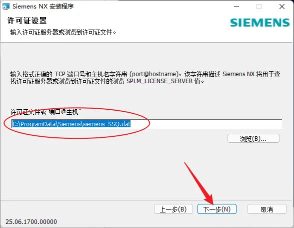 【C:\ProgramData\Siemens\siemens_SSQ.dat】点击下一步。