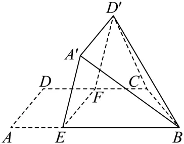 17.如图,在四边形中,为CD的中点,点E在AB上,,将四边形沿翻折至四边形,使得面与面EFCB所成的二面角为.