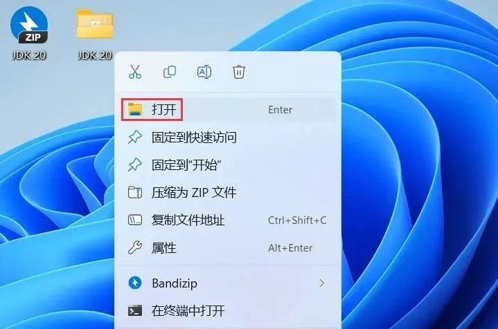 1、下载JDK 20软件安装包到电脑上,右键选择【解压到JDK 20\】
