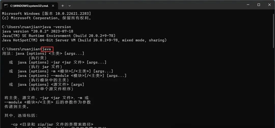10、输入:java,,按下键盘上的【Enter】回车键,得到下列反馈